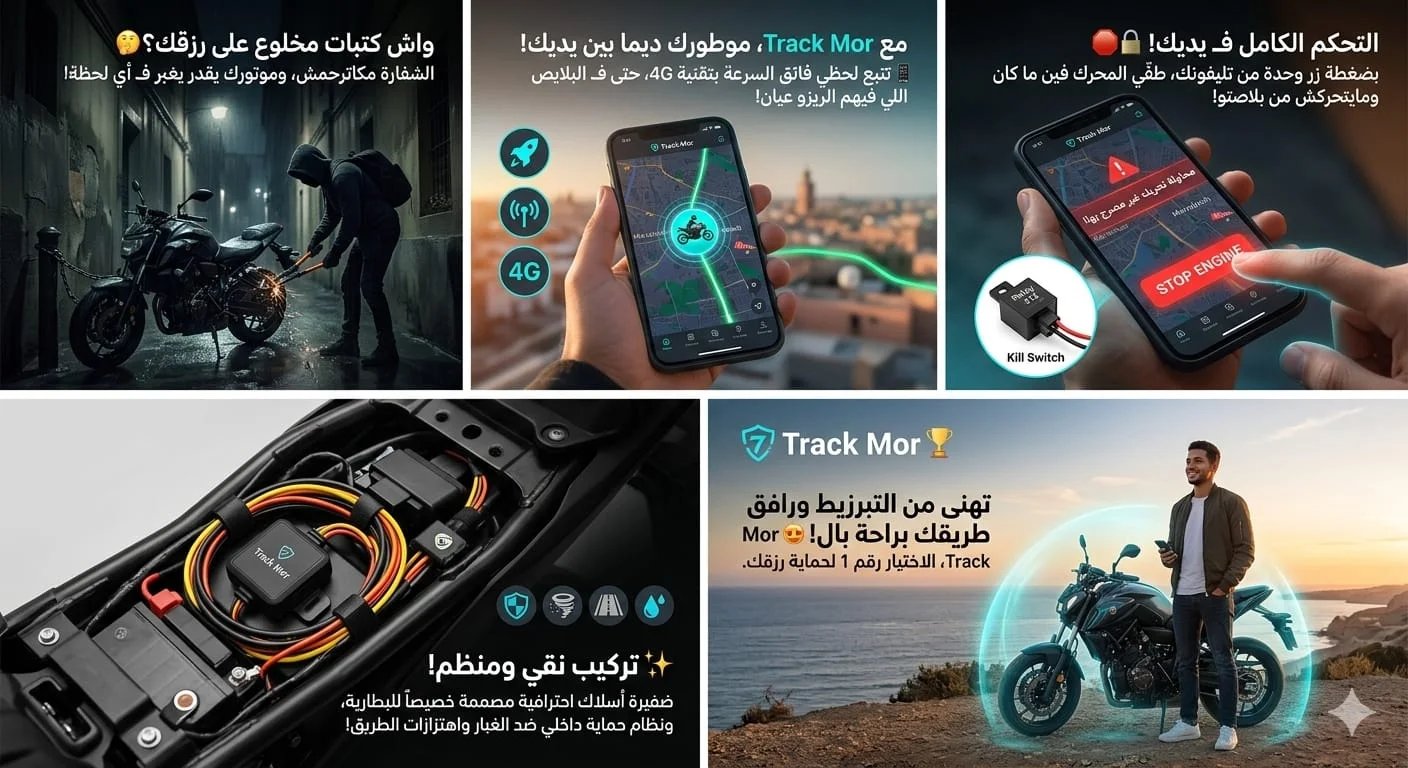 🏆🚀 نظام 4G المتطور: تتبع لحظي (Real-time) بدون أدنى تأخير! ⏱️ حتى في البلايص اللي فيهم الريزو عيان، موطورك ديما تحت المراقبة! 📡📶🔌 خيوط الربط الاحترافية (Wiring Kit): تركيب نقي ومنظم! ✨ كيجيك مع ضفيرة أسلاك ملونة (أصفر 🟡، برتقالي 🟠، أحمر 🔴، أسود ⚫) باش يركب نيشان مع البطارية بلا مشاكل! 🛠️🔋🚫 نظام الإيقاف عن بعد (Relay 212): التحكم الكامل في يديك! 📲 بفضل قطعة "الريلي" السوداء، تقدر تطفّي المحرك بضغطة زر من تليفونك ومايتحركش من بلاصتو! 🛑🔒Slots منفذ SIM ذكي: كيدعم الشركات المغربية 🇲🇦، مع حماية داخلية ضد الغبار 🌪️ والاهتزازات ديال الطريق 🛣️ باش يبقى خدام 24/24خليك "حادك" وحمي رزقك مع التقنية المغربية! 🧠💪✅ تتبع مباشر على الخريطة 🗺️✅ تنبيهات فورية في حال السرقة 🔔✅ جهاز صغير ومخفي بذكاء 🕵️♂️📦 اطلبه الآن واستفد من حماية Track Mor الاحترافية!💬